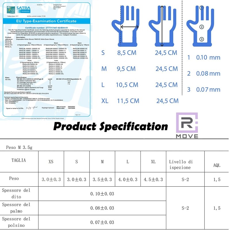 Dispositivo Medico Classe I Guanti monouso da esplorazione e protettivi realizzati in nitrile, privi di polvere, non sterili (Controllare che non presentino danni prima dell'uso. Non utilizzare guanti danneggiati.)